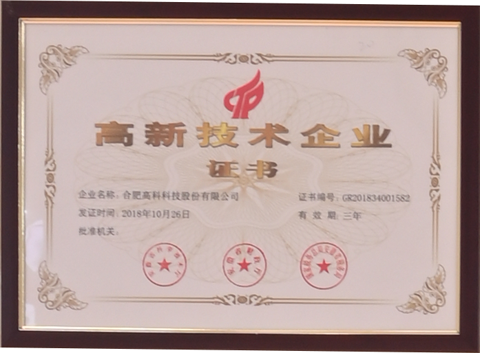 高新技術(shù)企業(yè)證書