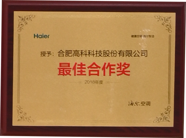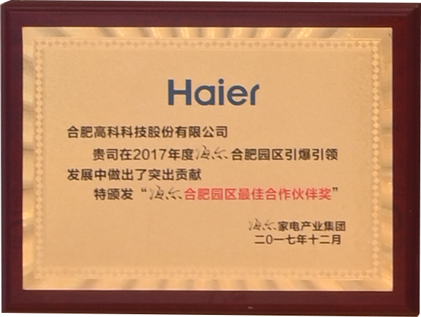 海爾合肥園區(qū)最佳合作伙伴獎