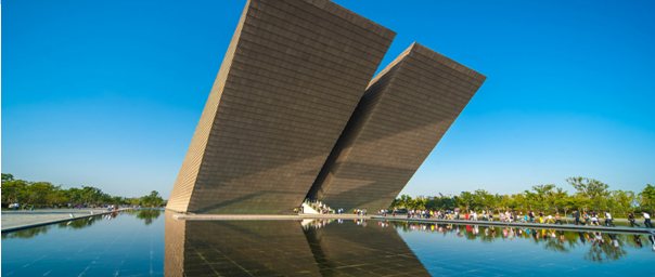 這是渡江戰(zhàn)役紀(jì)念館的主體建筑,體現(xiàn)的是水與艦的主題,兩艘巨艦并排駛出水面,直指南方長江,艦身49度角向前傾斜,象征著1949年渡江戰(zhàn)役的勝利。但我感受到的是這是一副魚水情,人們開始陸續(xù)登錄艦內(nèi),軍民同心,共抗敵寇,在中國共產(chǎn)黨這艘巨艦保護(hù)下,老百姓才能過得幸福,所以老百姓才全心全意的擁護(hù)這樣的政黨。