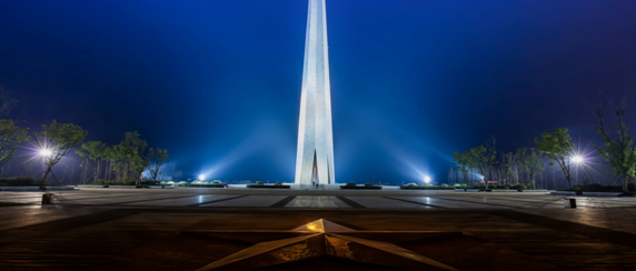 這是勝利塔,“擎天柱”外形,總高度是99米,以“九九八一”寓意“八一”軍隊的勝利,細(xì)心的人不難發(fā)現(xiàn),其一、塔是五邊形,塔頂一定是一個若大的五角星,其二、從雕像到勝利塔之間的距離,中間還有8顆碩大的五角星,若是俯瞰,把這三幅畫連在一起,一定能看到一副完善的畫卷,戰(zhàn)艦、五角星、勝利塔,猶如一艘乘風(fēng)破浪的巨艦在保護(hù)和守衛(wèi)著巢湖,正如一首歌名《眾人劃槳開大船》。