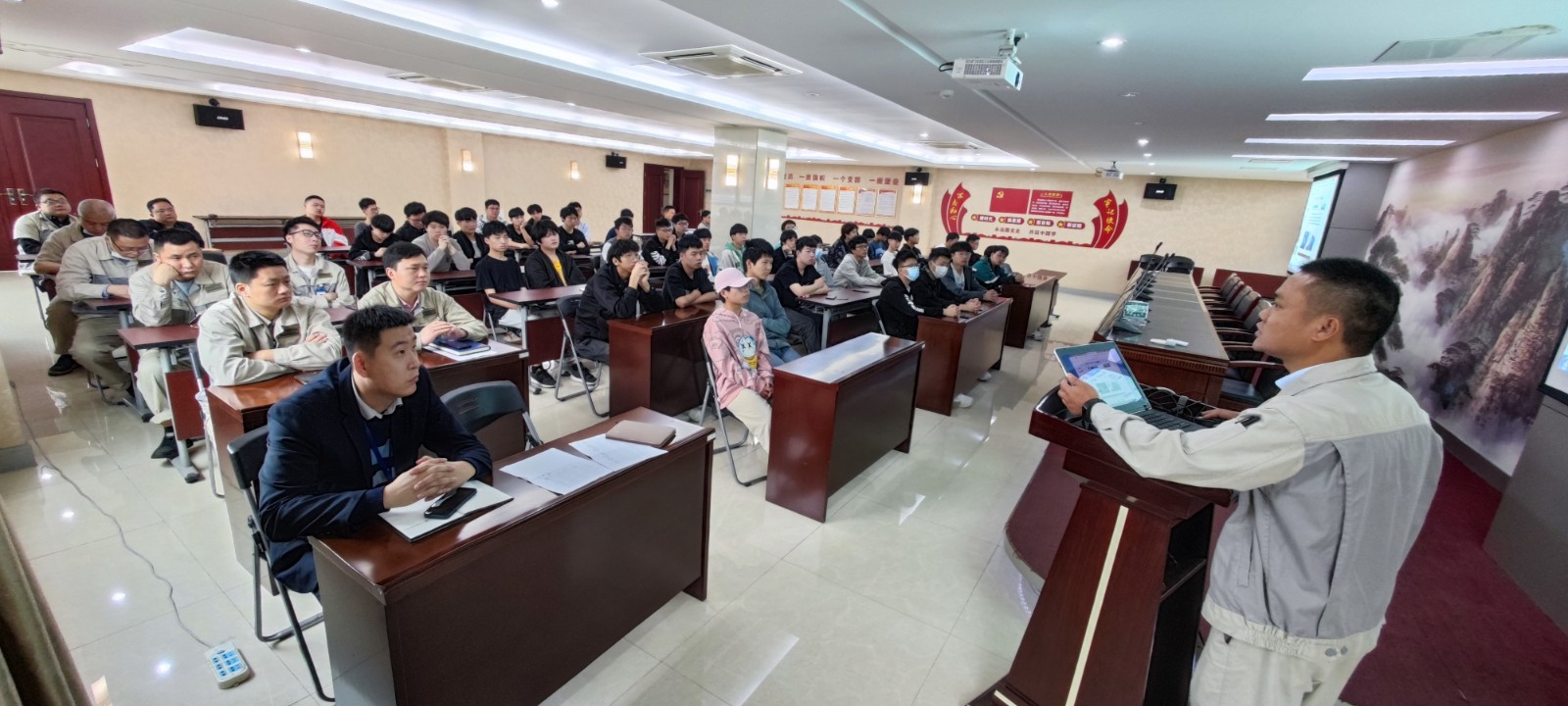 誓師大會(huì),由各事業(yè)部選拔出兩名優(yōu)秀的技能和管理雙人才做為導(dǎo)師,并頒發(fā)聘書(shū)和工服,和各自的學(xué)員們拍照合影留念。
