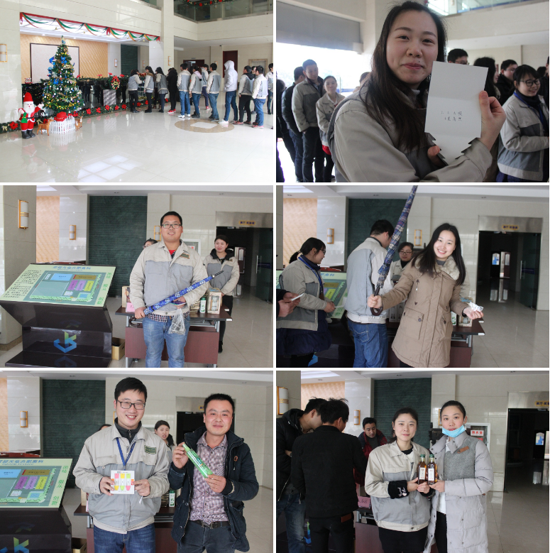 整個(gè)活動(dòng)現(xiàn)場(chǎng)全程的為大家播放有關(guān)的圣誕歌曲,烘托了現(xiàn)在氣氛,最熱鬧、激動(dòng)人心的是抽獎(jiǎng)環(huán)節(jié),每個(gè)獎(jiǎng)品都寫在賀卡里,賀卡里有實(shí)物獎(jiǎng)和新年祝福語!