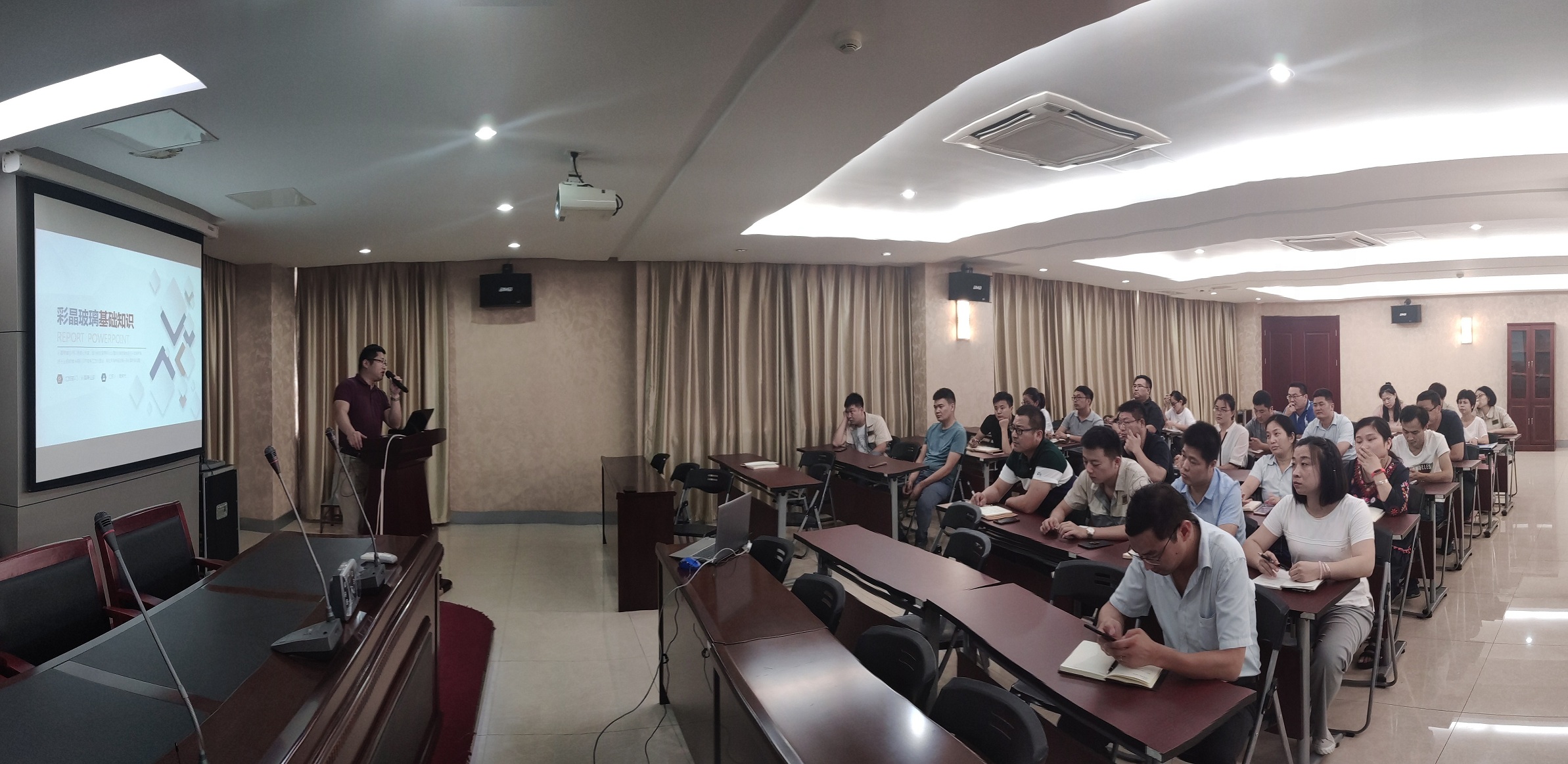 7月17日下午,合肥高科進(jìn)行了業(yè)務(wù)知識(shí)培訓(xùn)第七講:彩晶玻璃基礎(chǔ)知識(shí)培訓(xùn),主講人是彩晶事業(yè)部魏部長。魏部長圍繞著彩晶玻璃的應(yīng)用、生產(chǎn)過程、主要客戶以及競爭對(duì)手、彩晶的產(chǎn)能及利潤構(gòu)成,分別展開了詳解。